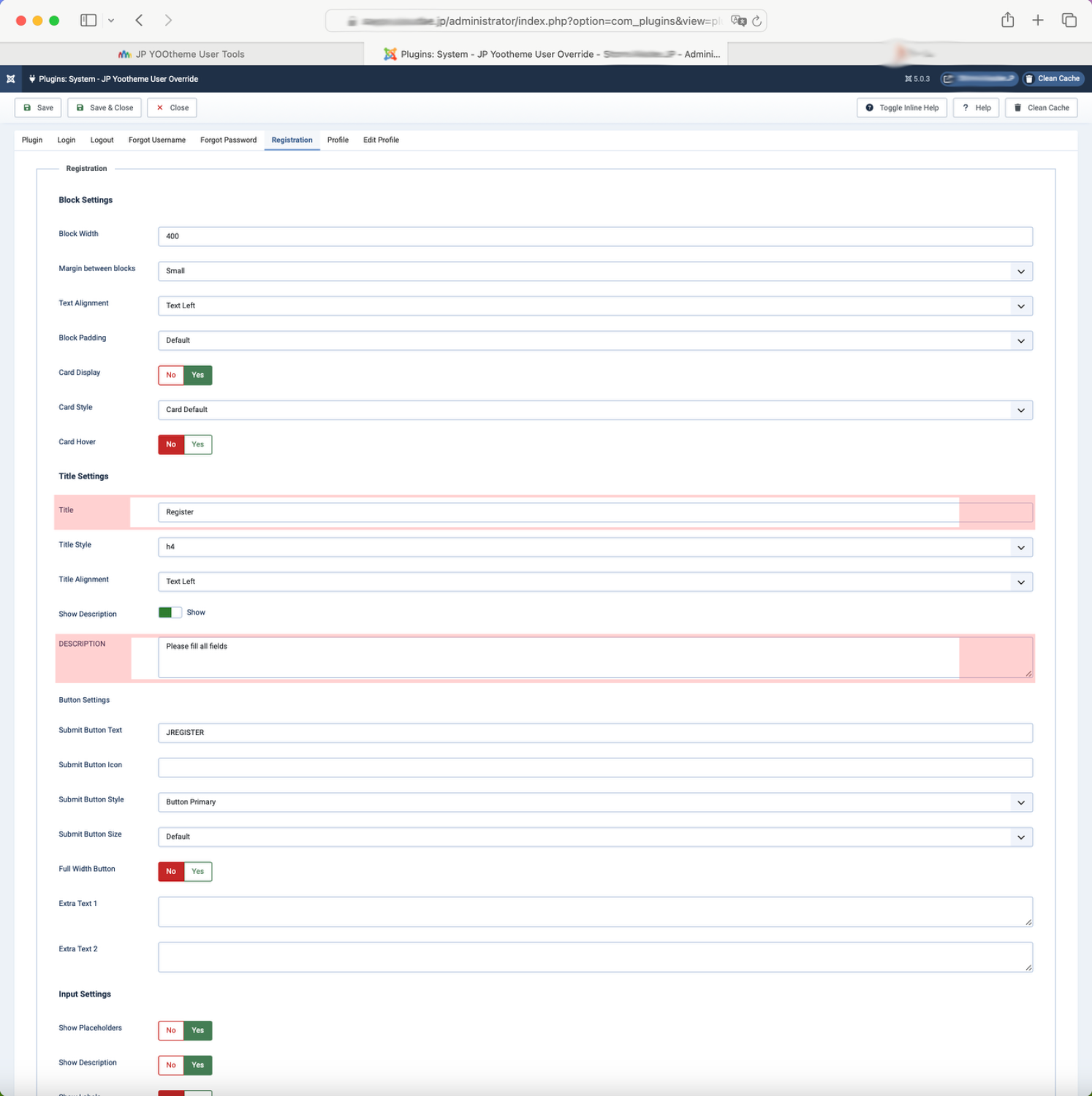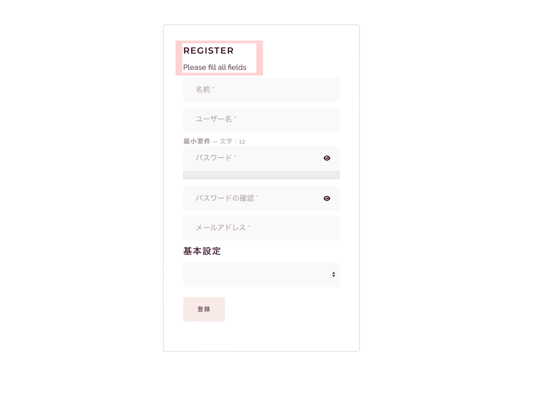 Registration > Title Settings > DESCRIPTION 'Please fill all fields'