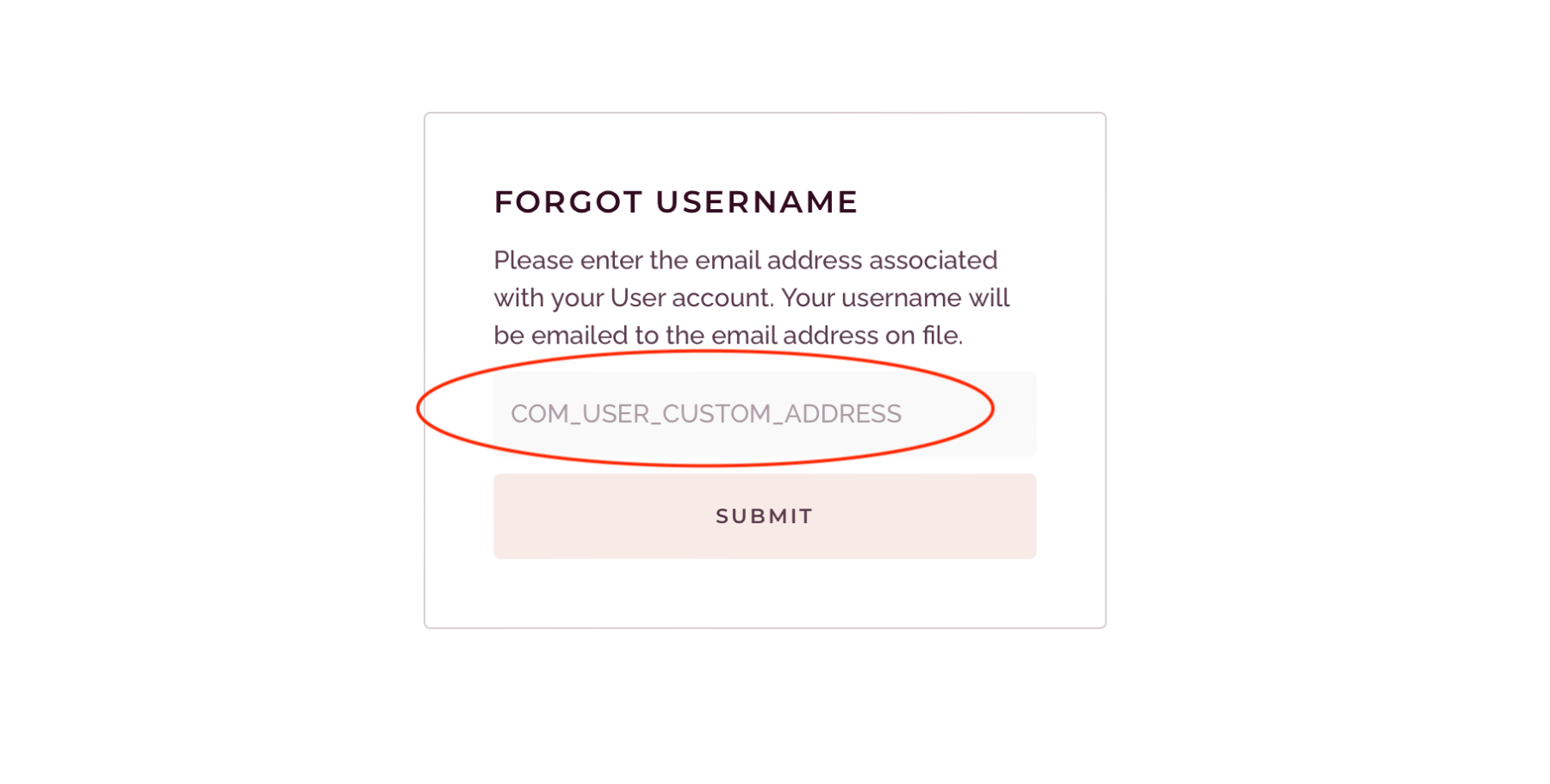 It is ‘Enter Email Address’ in the press holder part of Forgot Username and Forgot Password.
