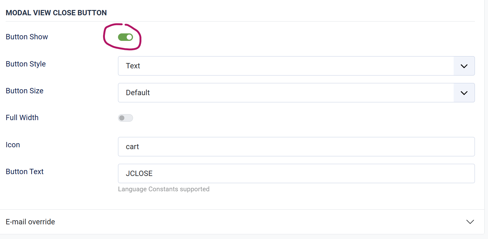 PC UIkit Configs in Joomla Backend is not saving the Modal View Close Button (Do Not Show) setting on save, It keeps reverting back to "Button Show = On" after saving.