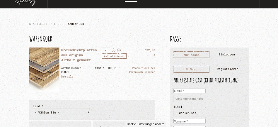 You can see it here, by clicking the "Warenkorb" or put a new product in cart.