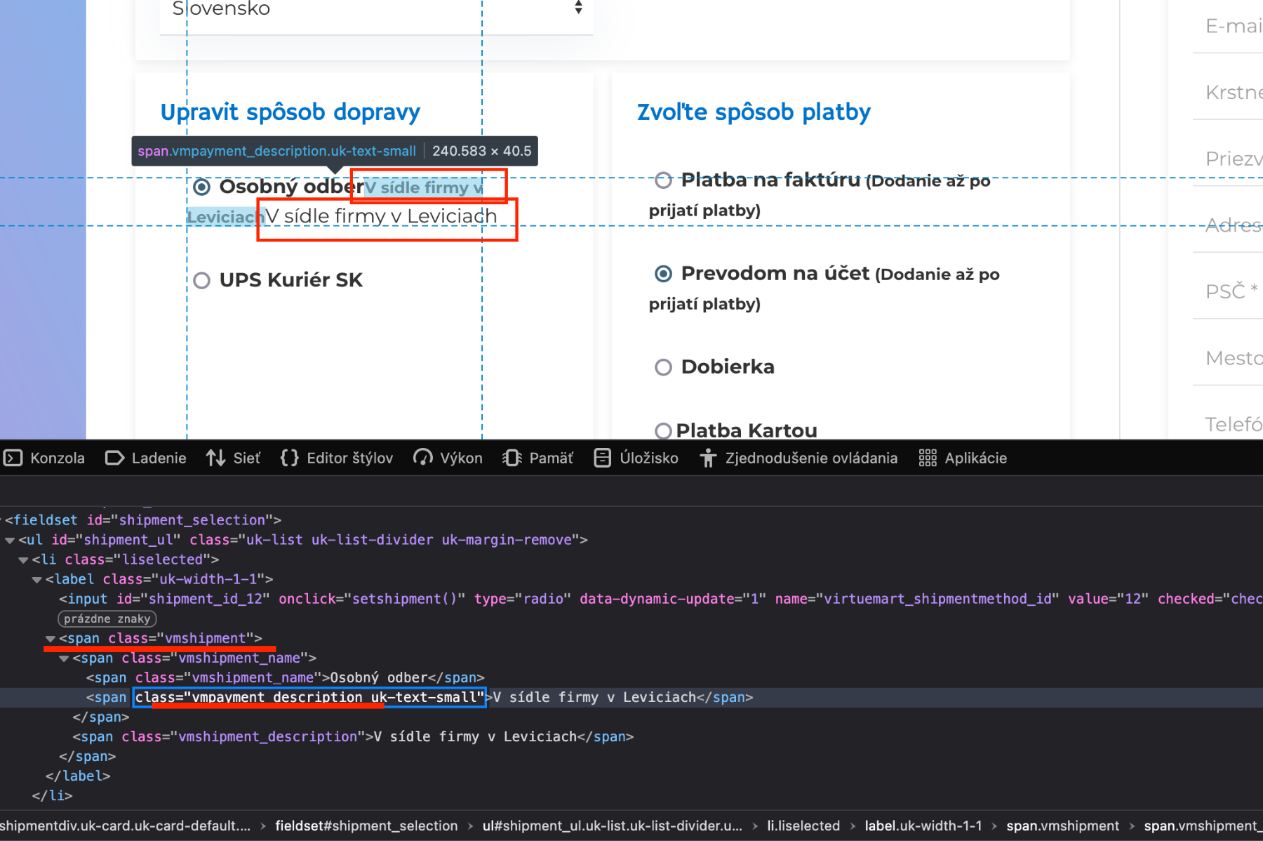 it seems there is a wrong class payment under the shippment.. im not sure if this can cause this with some js..