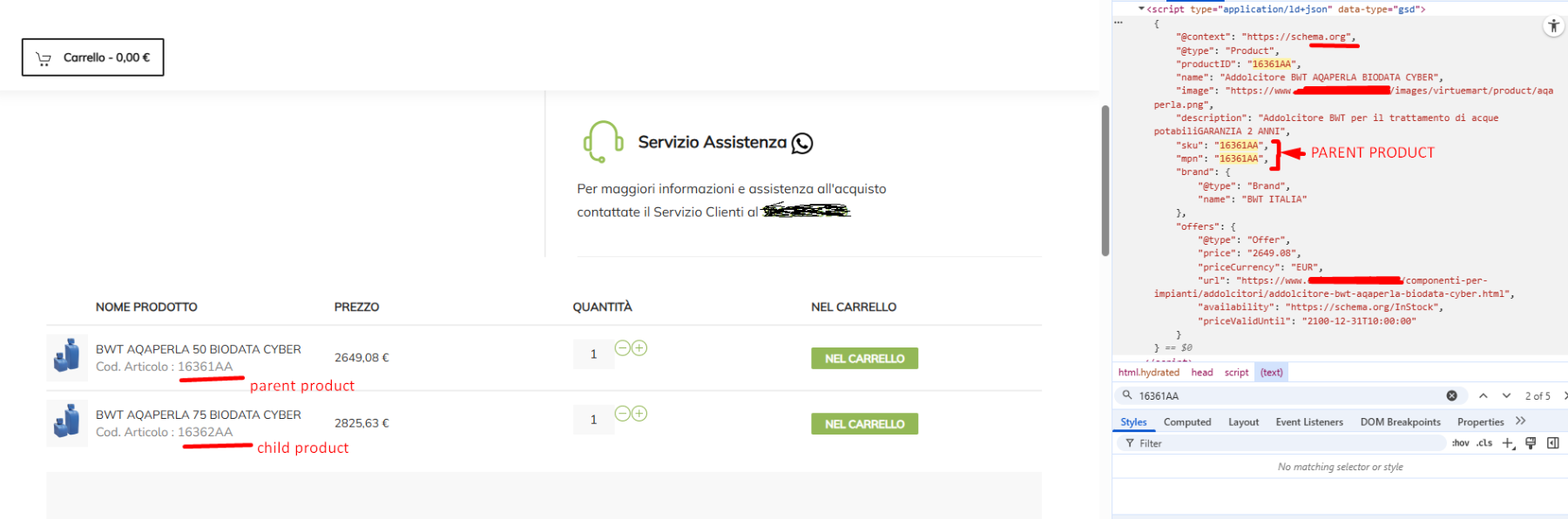 We noticed a problem in the propagation of schema.org information associated with the child products of our e-commerce site.