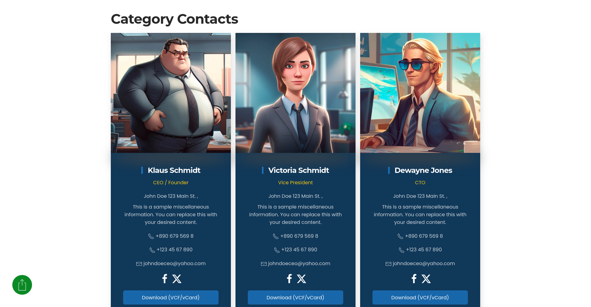 - Categories & single contacts – build structured directories or highlight individual profiles.