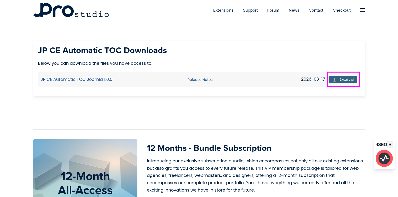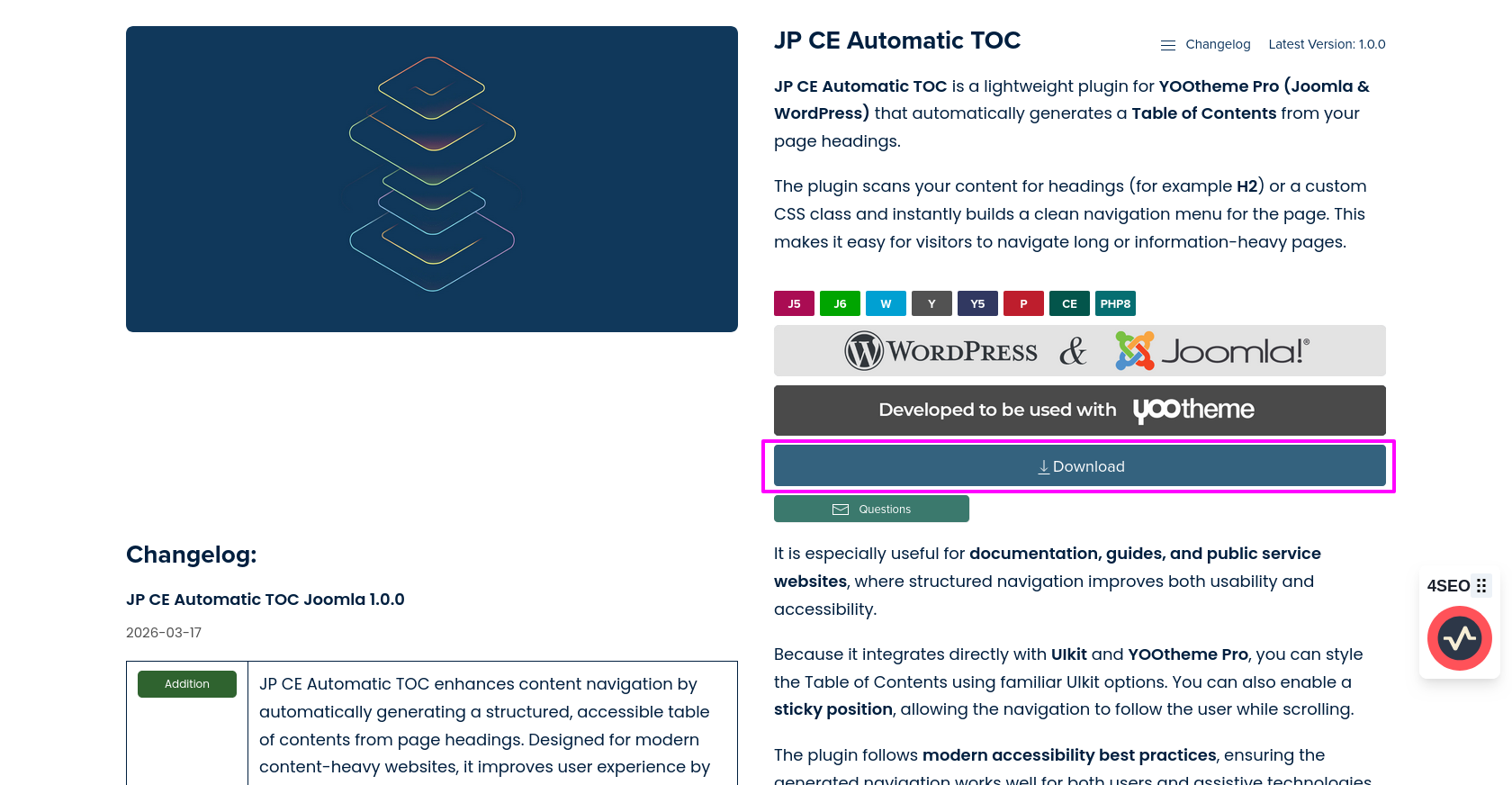 - Download the latest version of the JP CE Automatic TOC plugin from the product page.